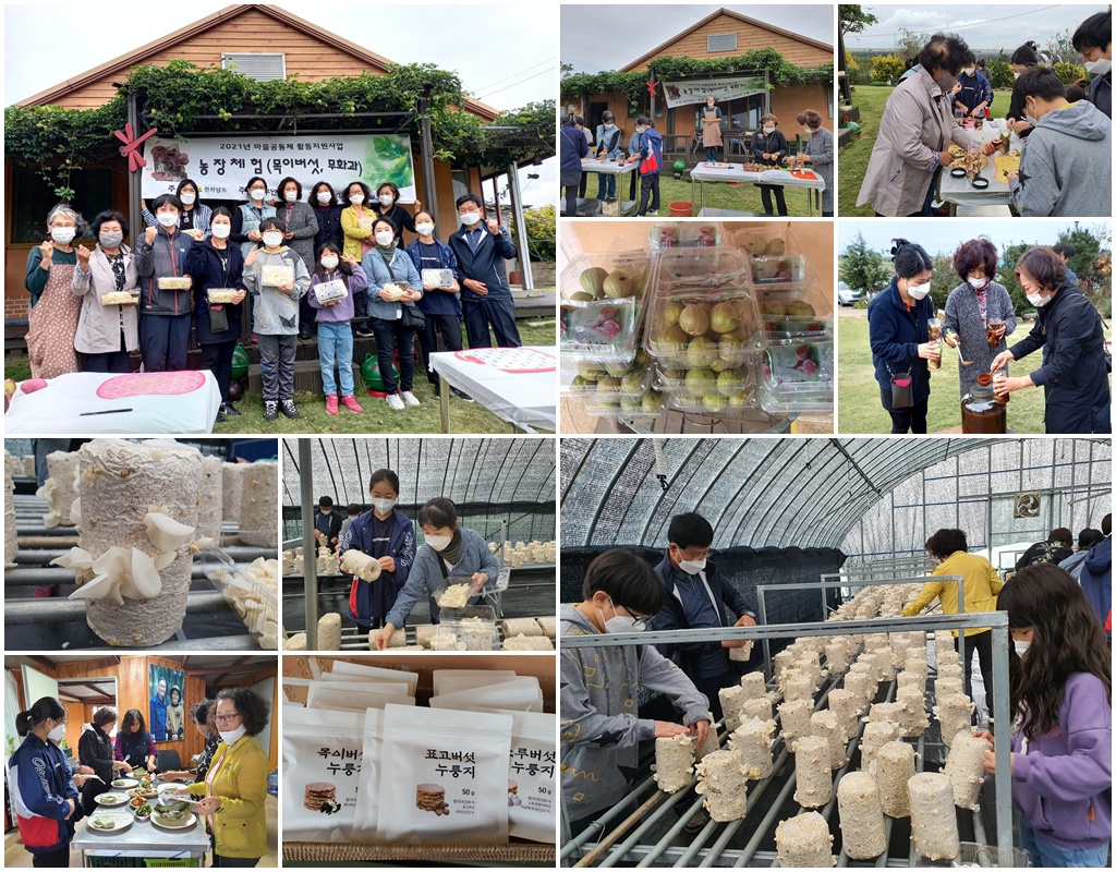 2021년마을공동체활동 지원사업 대상 : 무안팜스쿨 회원 및 주민 15명 일정 : 10/16일(토) 10:30~13:00 내용 : 목이버섯따기 & 무화과 식초 만들기 주민참여 농장체험으로 목이버섯따기와 무화과 식초 만들기를 진행하였습니다. 다소 추운 날씨 였지만 즐거운 체험이 되었습니다. |